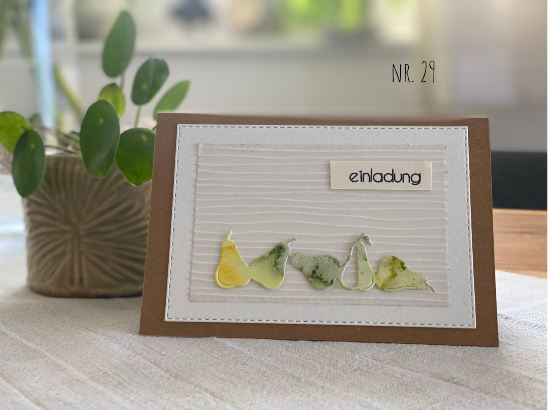 Bitte lege einfach den Artikel "Handgemachte Karten " in den Warenkorb 🛒 und gib im letzten Bestellschritt die Nummer bzw. Bezeichnung der gewünschten Karte an - danke 🦊
